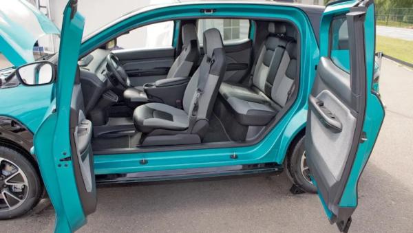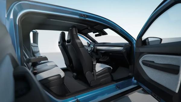 Из-за отсутствия центральных стоек ремни безопасности для передних пассажиров интегрированы прямо в сиденья. На втором ряду обещают запас пространства, сопоставимый с Toyota Camry, однако посадочных мест всего четыре — задний диван рассчитан лишь на двух человек.