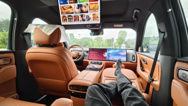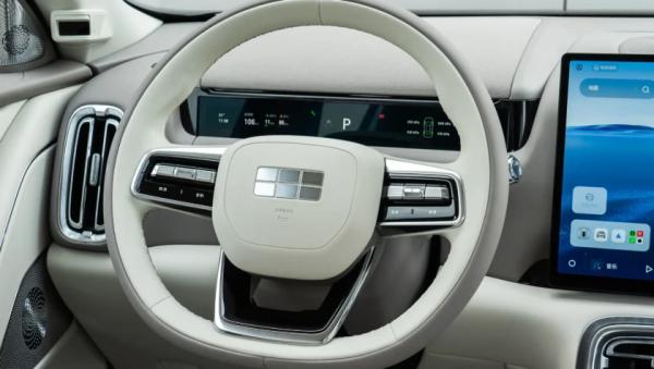 Интерьер тоже оформлен в духе моделей Lixiang: передняя панель представляет собой широкий панорамный дисплей, растянутый от центральной зоны до переднего пассажира, а роль приборной панели выполняет узкая горизонтальная полоска экрана перед водителем.