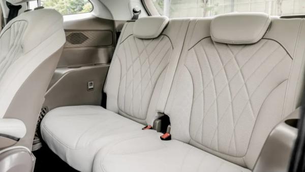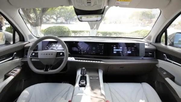 В 7-местном салоне во всю ширину передней панели «змейкой» установлены три горизонтальных дисплея: виртуальные приборы, мультимедийная система и экран для пассажиров (суммарная диагональ — 47 дюймов). Но вроде как в базовых комплектациях экрана только два.